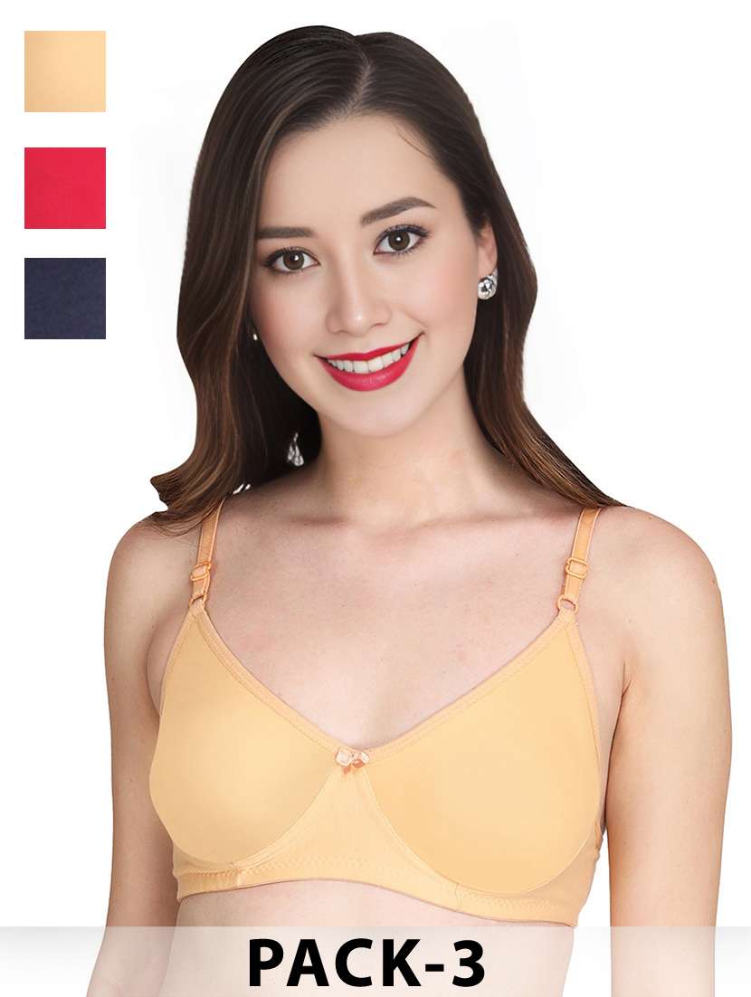 women pack of 3 solid non wired t-shirt bra - 22025782 -  Standard Image - 2 women pack of 3 solid non wired t-shirt bra - 22025782 -  Zoom Image - 2
