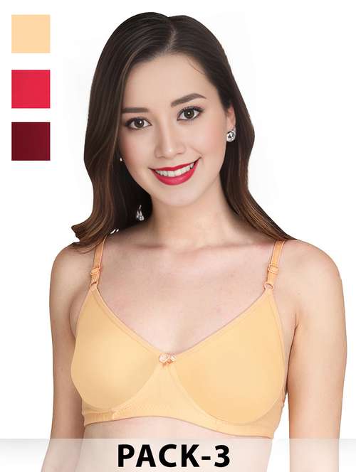Liigne Women Everyday Padded Bra (Pack Of 3) - Made of Pure Cotton Full Coverage Non Wired Pushup Soft Cup for T-Shirt Saree Dress Sports Garment for Daily Use Everyday