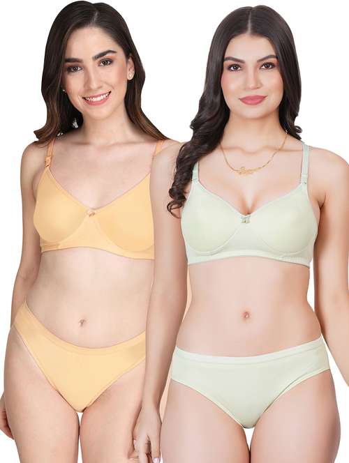 Liigne Women Everyday Padded Bra Panty Set (Pack Of 2) - This Lingerie Set Made of Pure Cotton