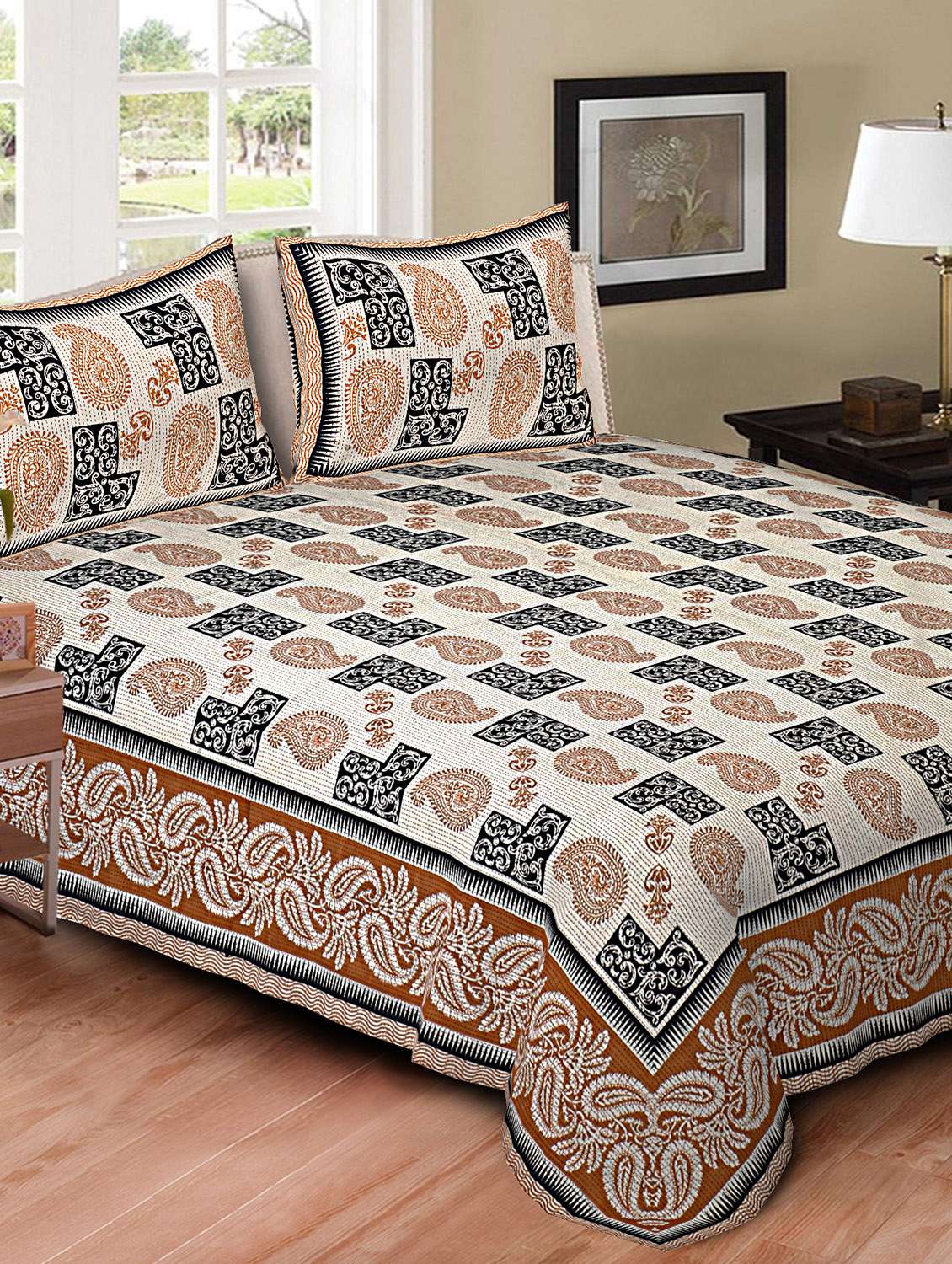 - » cotton kantha look jaipuri print super king size bedsheet with 2 pillow covers