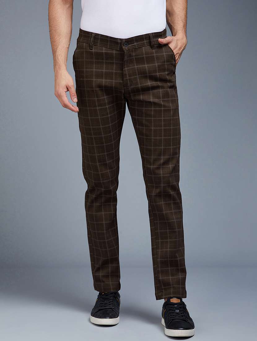 brown checkered chinos casual trouser