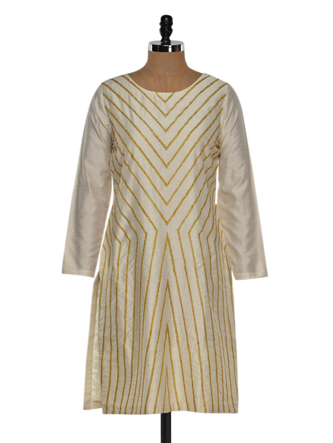 solid cream long kurta with gold embroidery