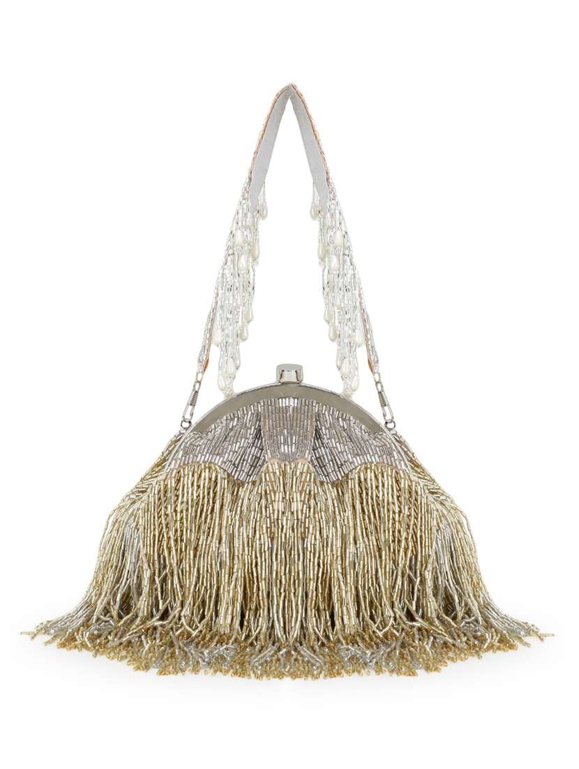- » gold faux silk ethnic clutch
