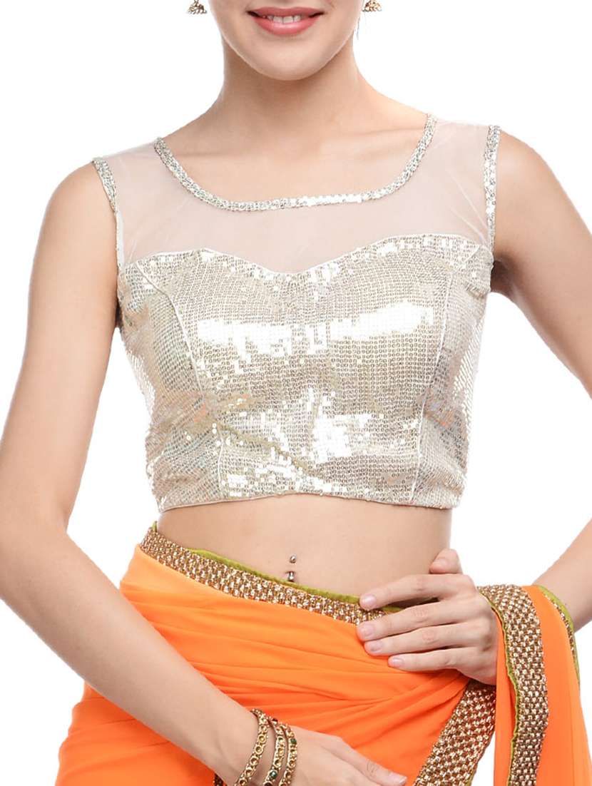 - » Dusty gold georgette sequined sleeveless stitched blouse