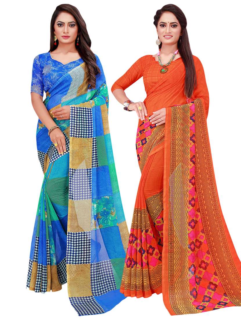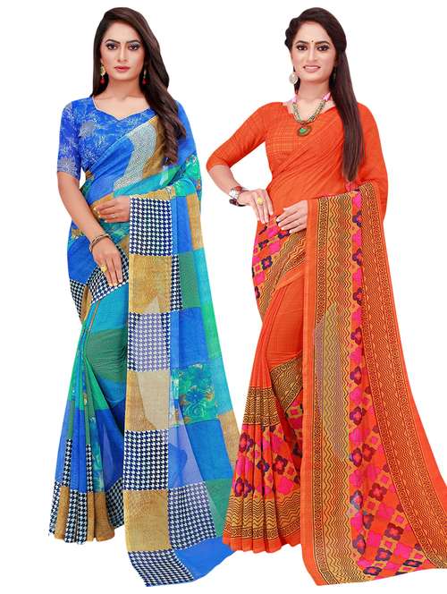 pack of 2 printed casual wear sarees with blouse - 21396214 - Very Small Image - 1