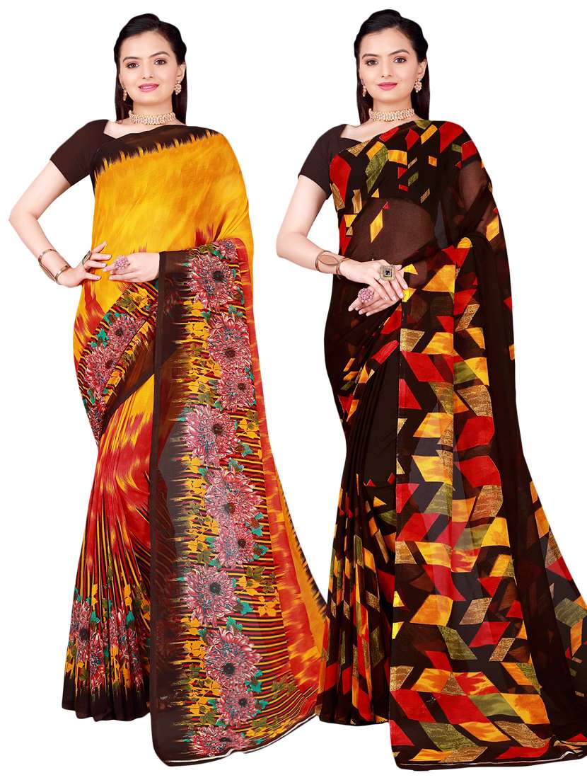 pack of 2 printed casual wear sarees with blouse - 21396418 - Very Small Image - 1