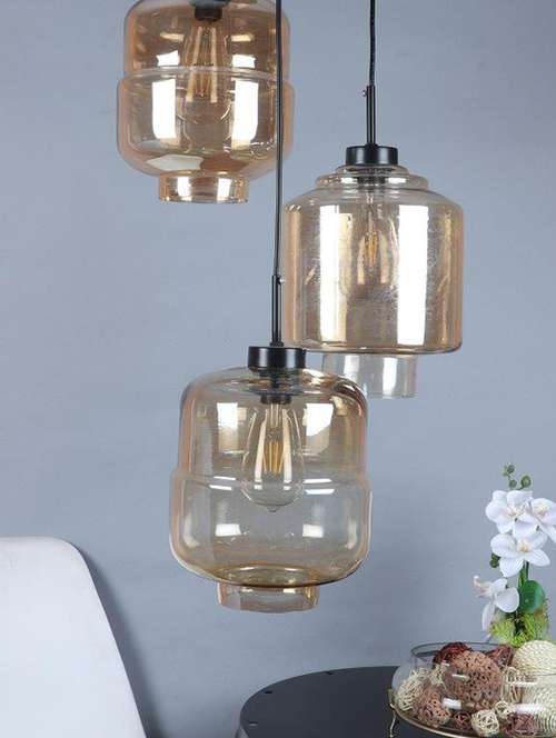 eliante antique copper iron base gold glass shade hanging light - 8433-3lp - without bulb