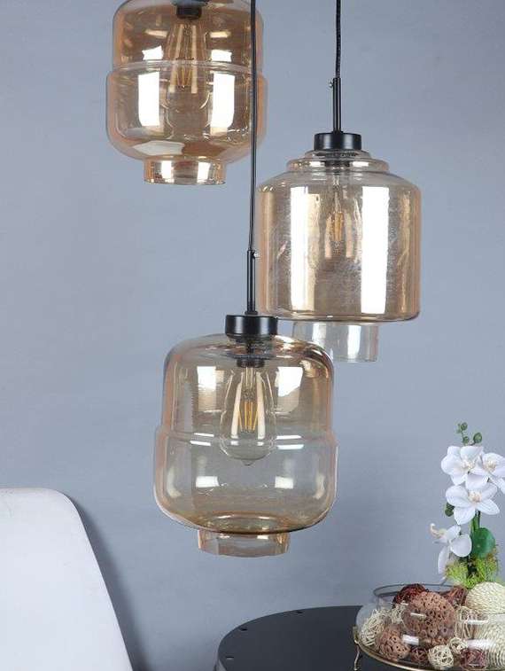 - » eliante antique copper iron base gold glass shade hanging light - 8433-3lp - without bulb