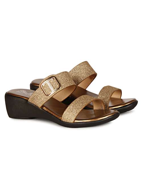 women gold slip on sandal