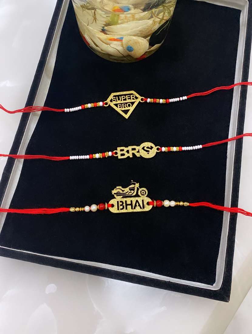 - » combo of 3 lavish wooden bullet bhai super bro superman rakhi set