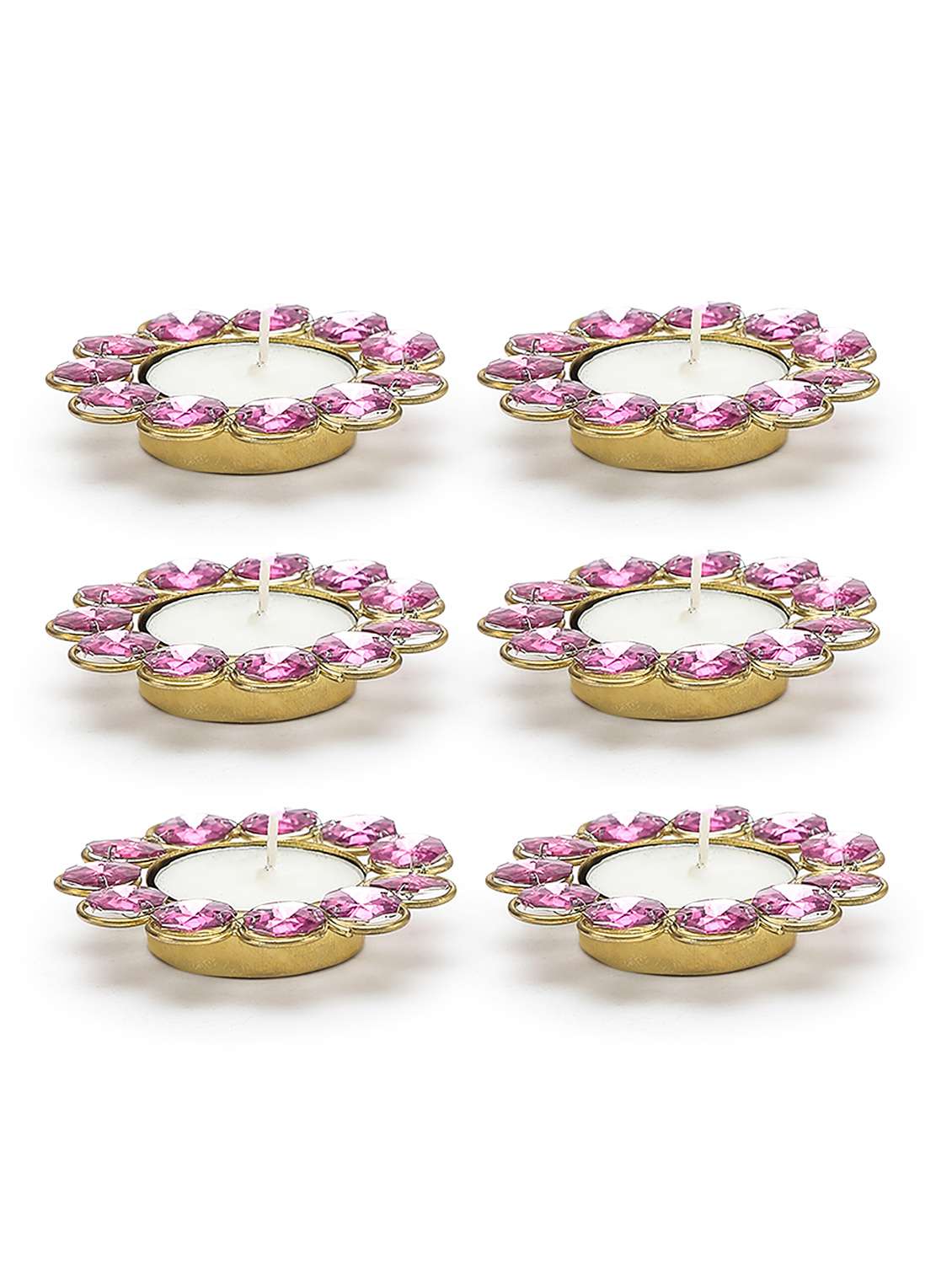 - » tea light diya set of 6 pink stone