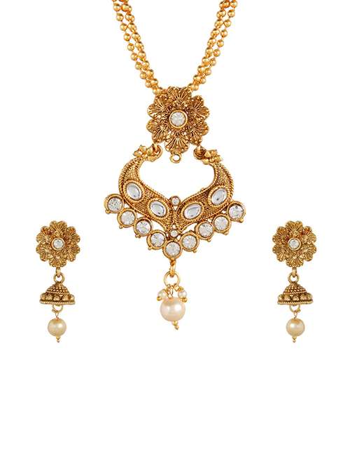 Charming Jewels Alloy Kundan Necklace Set for Women - Gold