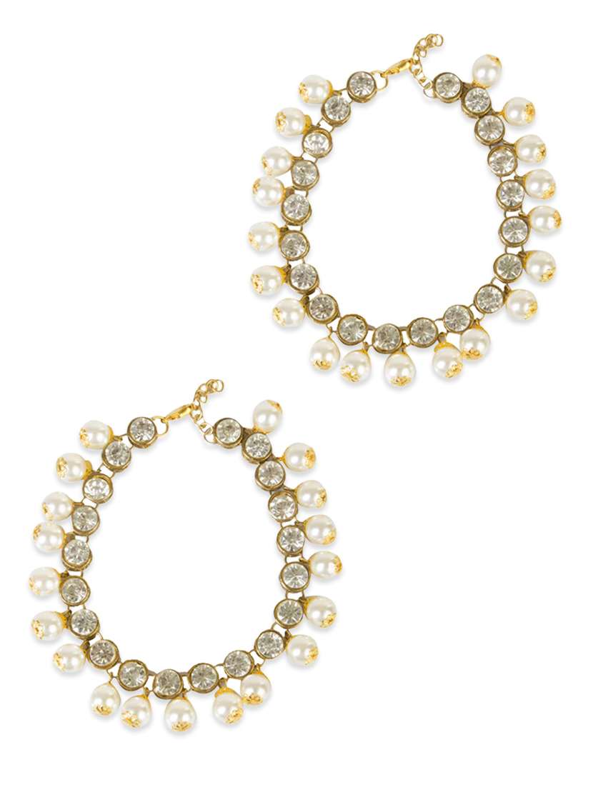 - » gold metal pearl stone anklets