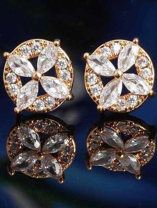 - » crystal studded gold flower studs