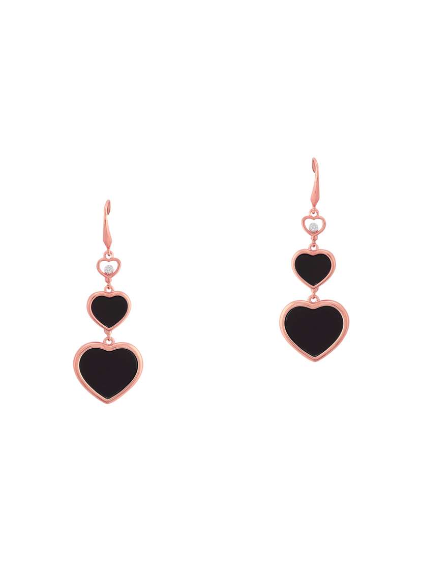 FDStyles Heart Black Crystal 18k Rose Gold Plating Alloy Party Wear Dangler Earring Women & Girls