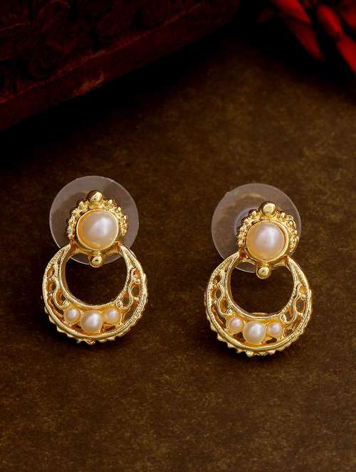 Gehena by Estele - Gold Tone Pearl Filigree chaandbali Stud Earrings