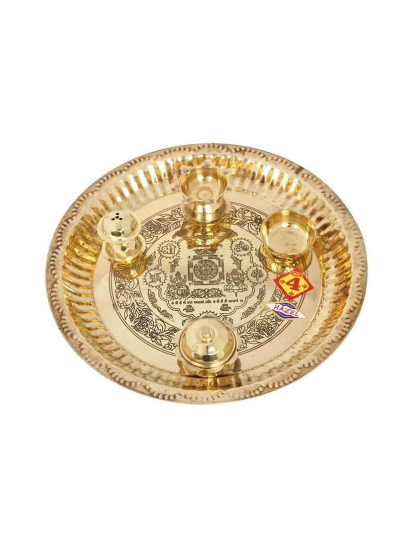 - » hazel laxmi yantra brass pooja aarti thali, golden