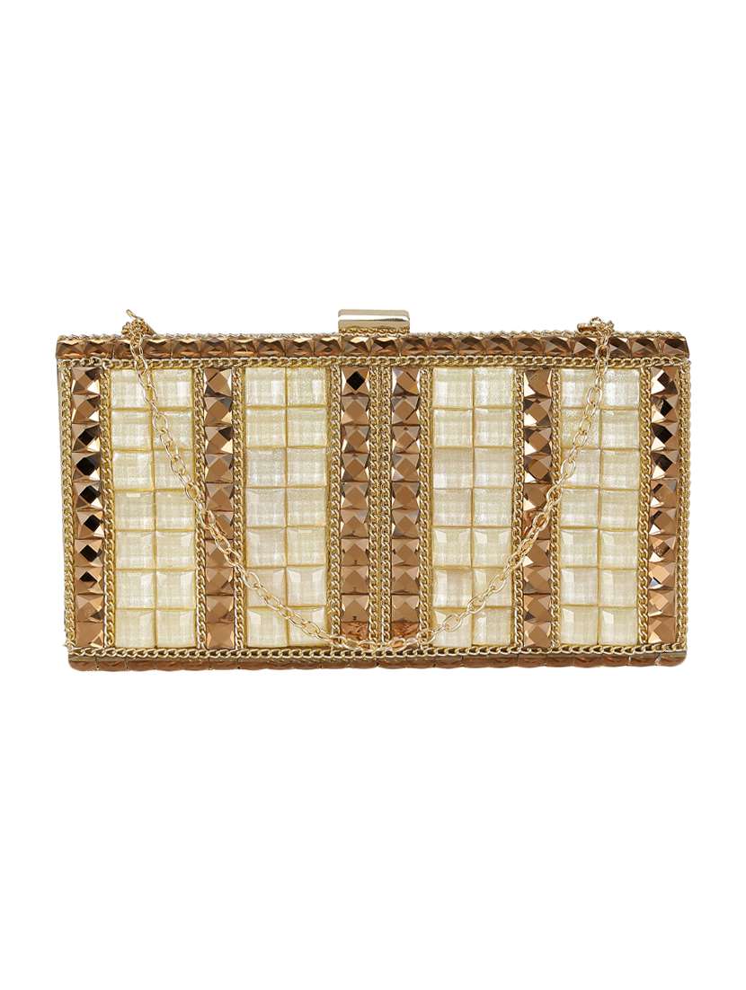 gold metal box clutch