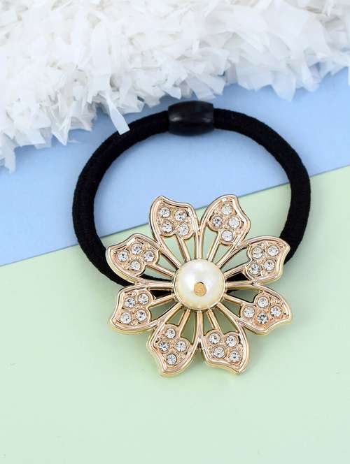 Rose Goldplated Hairpony Band, which look elegant against Black hair. Medium size, which makes it good wear for Women and Girls of all ages. Superfine finish and making, for long lasting use.
