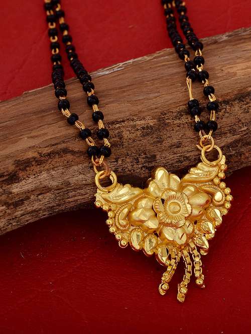 - » elegant black beaded mangalsutra with gold pendant