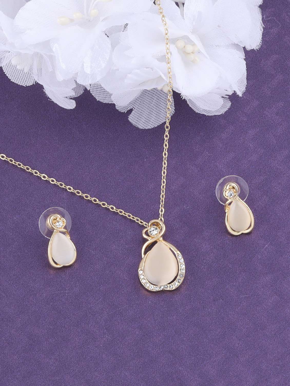 - » gold metal pendant and earrings
