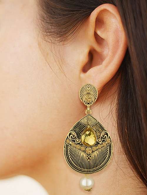 Spargz Excellent Antique Gold Plated Synthetic Stone Dangle Earring For Women