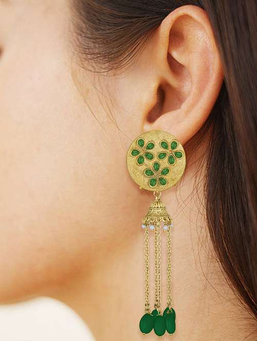 Spargz Antique With Long Chain Jhumki Gold Plated Synthetic Stone Earring For Women