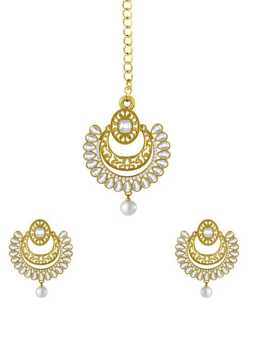 Spargz Ethnic Wedding Wear Gold Plated Kundan & Pearl Maangtikka Earring For Women