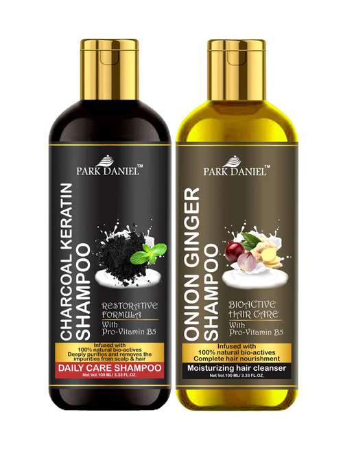 park daniel premium pure and natural charcoal keratin shampoo & onion ginger shampoo combo pack of 2 bottle of 100 ml(200 ml)