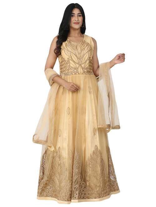 embroidered net flared gown - 17562590 - Very Small Image - 1