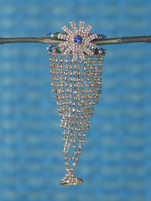 \"Piah Fashion Premium Haath phool(pocha) design 1.Metal-Alloy 2.Colour- Gold 3.Dimension Phool(Pocha) in cm Pocha Bracelet size - Free Size Bracelet to fingure size L-13, W-3, H-0.1 Fingure Ring Size - Free Size 4.Plating- Gold 5.Weight-22g \"