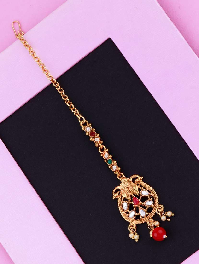 gold plated traditional kundan style maang tikka - 18042314 - Very Small Image - 1