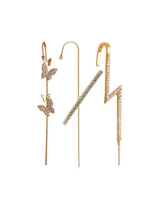 - » pack of 3 gold plated stylish zircon studded cross butterfly and zircon studded ear cuff