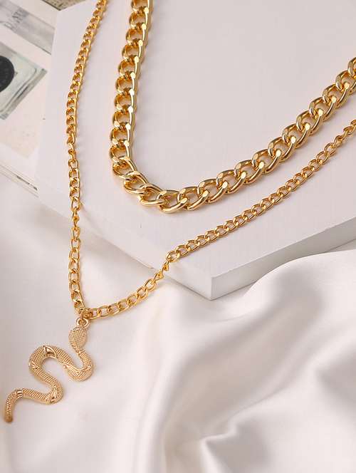 - » stunning gold plated double layered chunky chain link and snake pendant necklace for women and girls