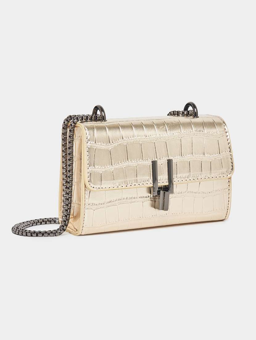women gold pu sling bag