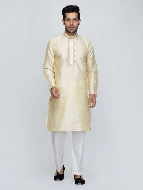 men solid mandarin neck kurta with trouser ethnic wear set - 22000428 - Very Small Image - 1