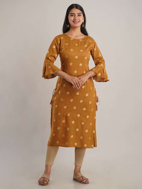 women printed bell sleeve straight kurta