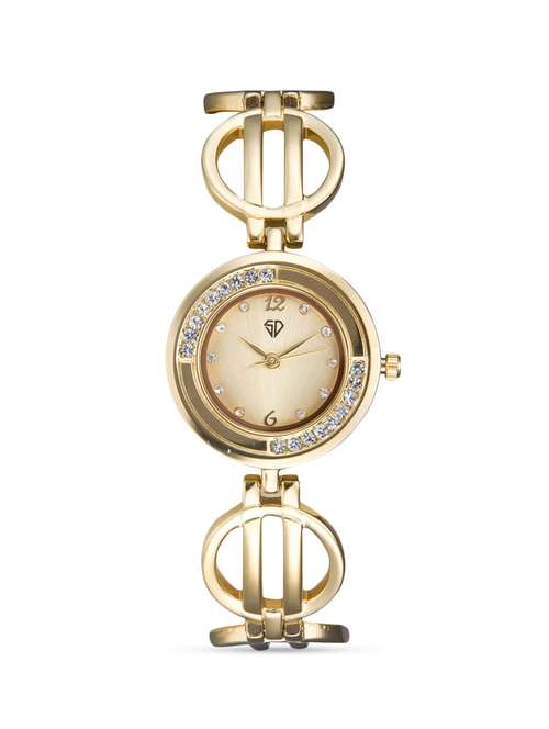 gold round dial studded watch