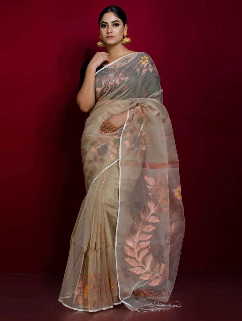 - » women beige self design jamdani saree