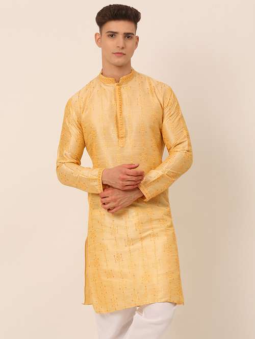 mandarin neck self design straight kurta