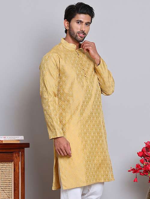 men self design mandarin neck long kurta