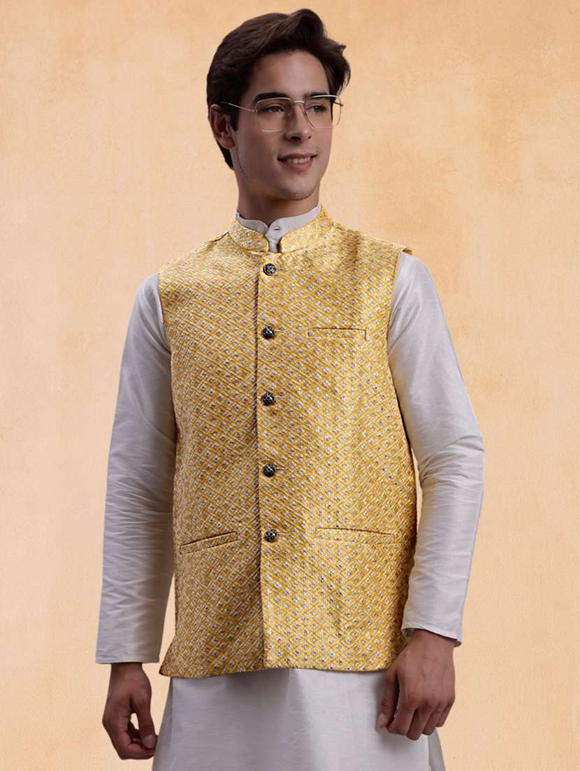 - Look stylish and confident in Jompers brands with gold Nehru jackets in which you will feel your best.