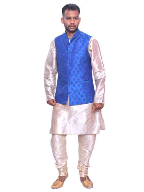- » gold silk blend kurta pyjama with jacket ethnic wear set