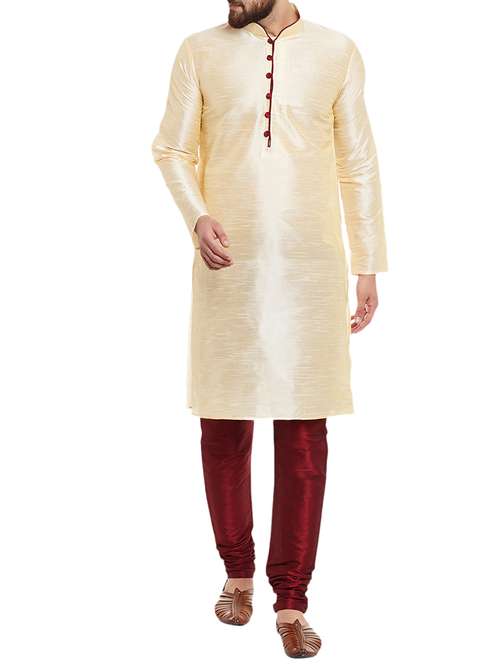 beige silk blend kurta pyjama set