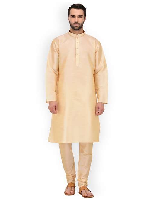 men solid mandarin neck kurta churidar ethnic wear set - 22000363 - Very Small Image - 1