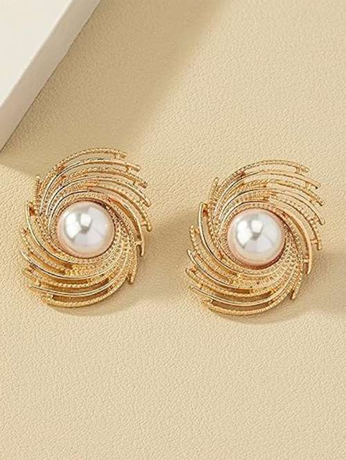 women gold stainless steel stud earrings