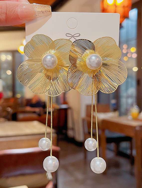- » long fringe pearl hollow big flower long dangle bohemian earrings