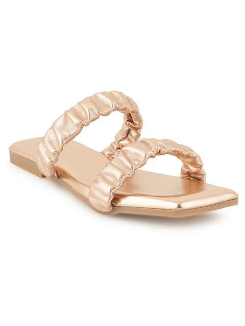 gold synthetic slip on sandals