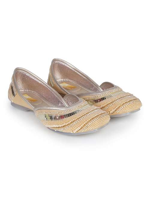 women gold slip on mojari