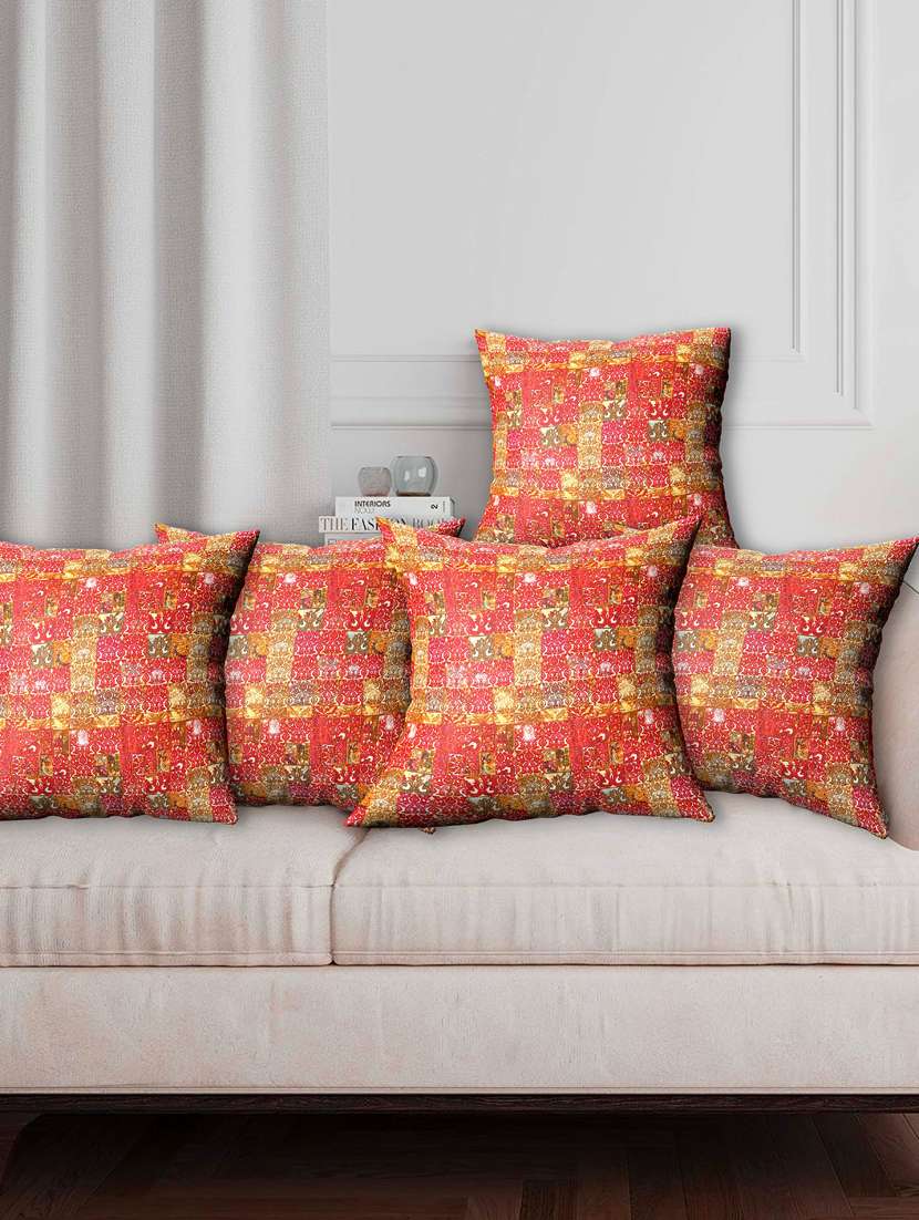 texstylers fancy stylish 16 x 16 inches jaipuri set of 5 pcs sofa cushion covers
